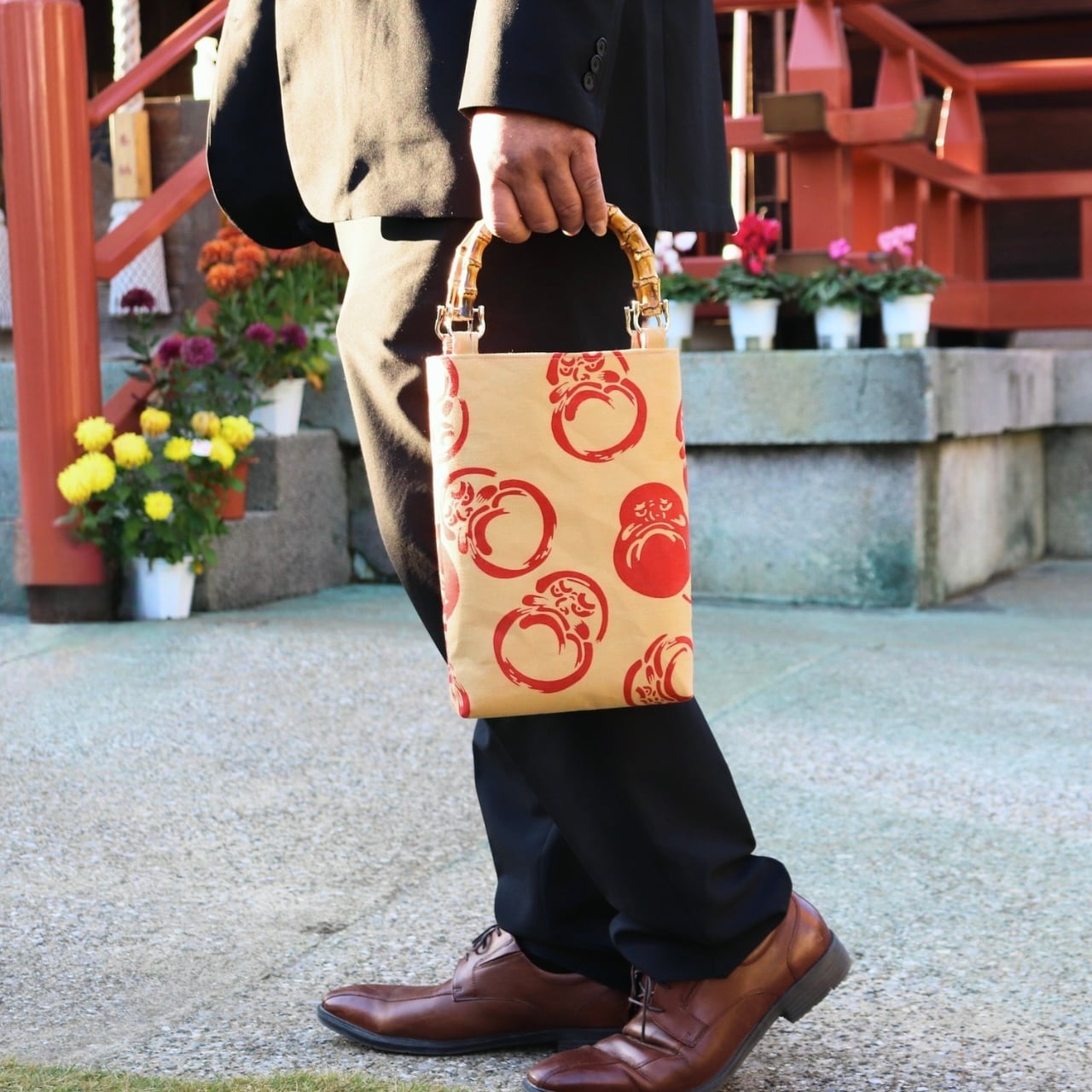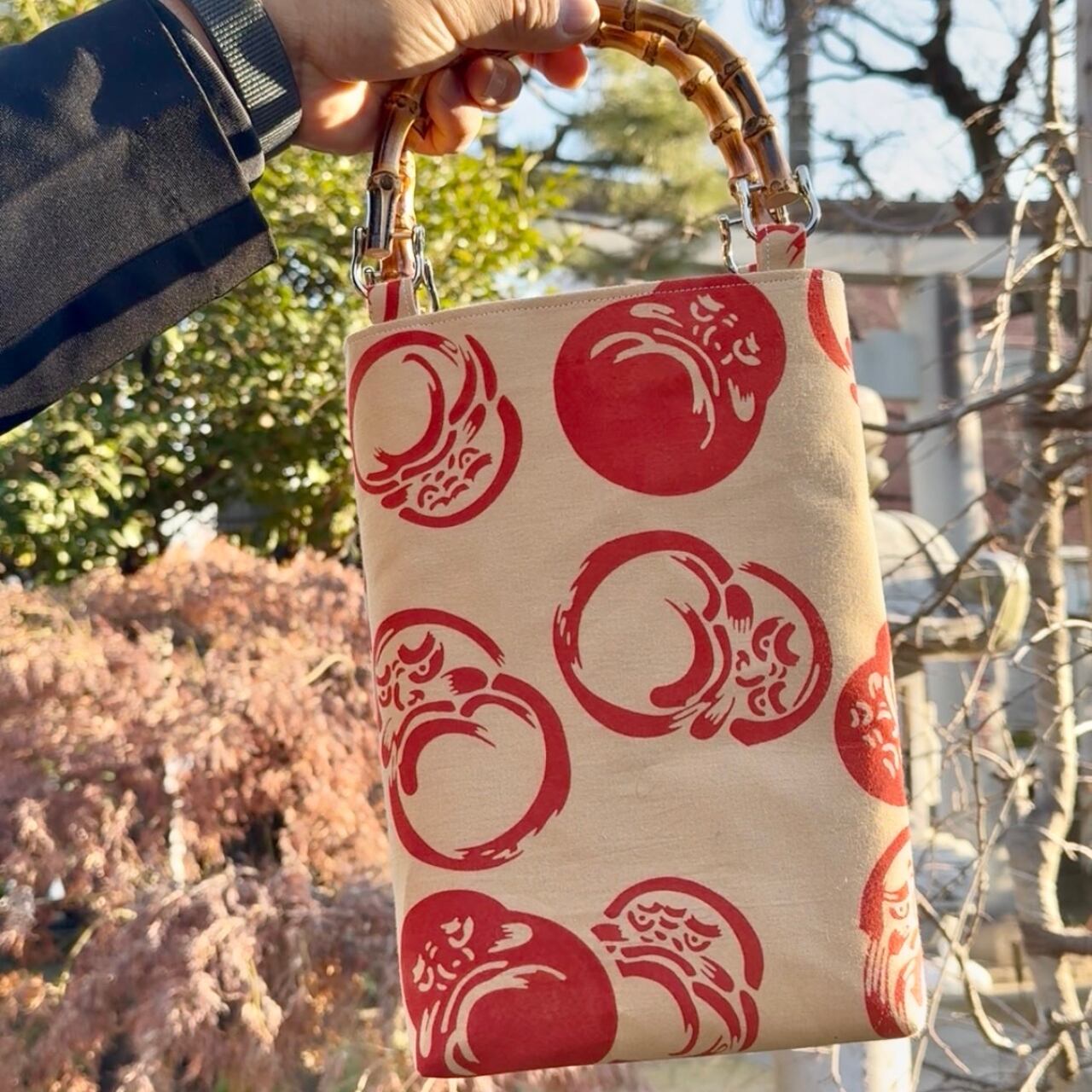 だるま柄 バンブー手提げバッグ 縦型(M)