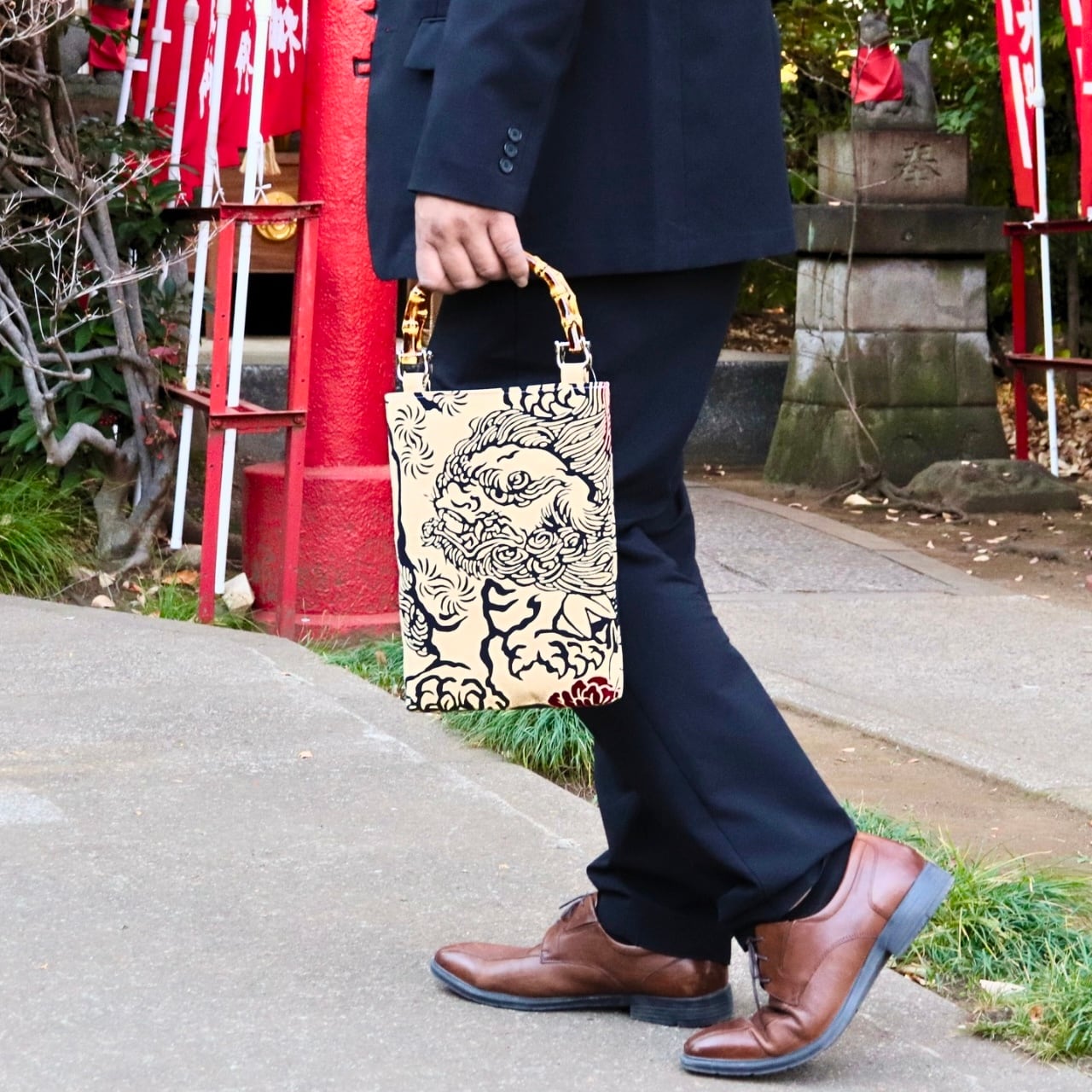 獅子柄 バンブー手提げバッグ 縦型(M)